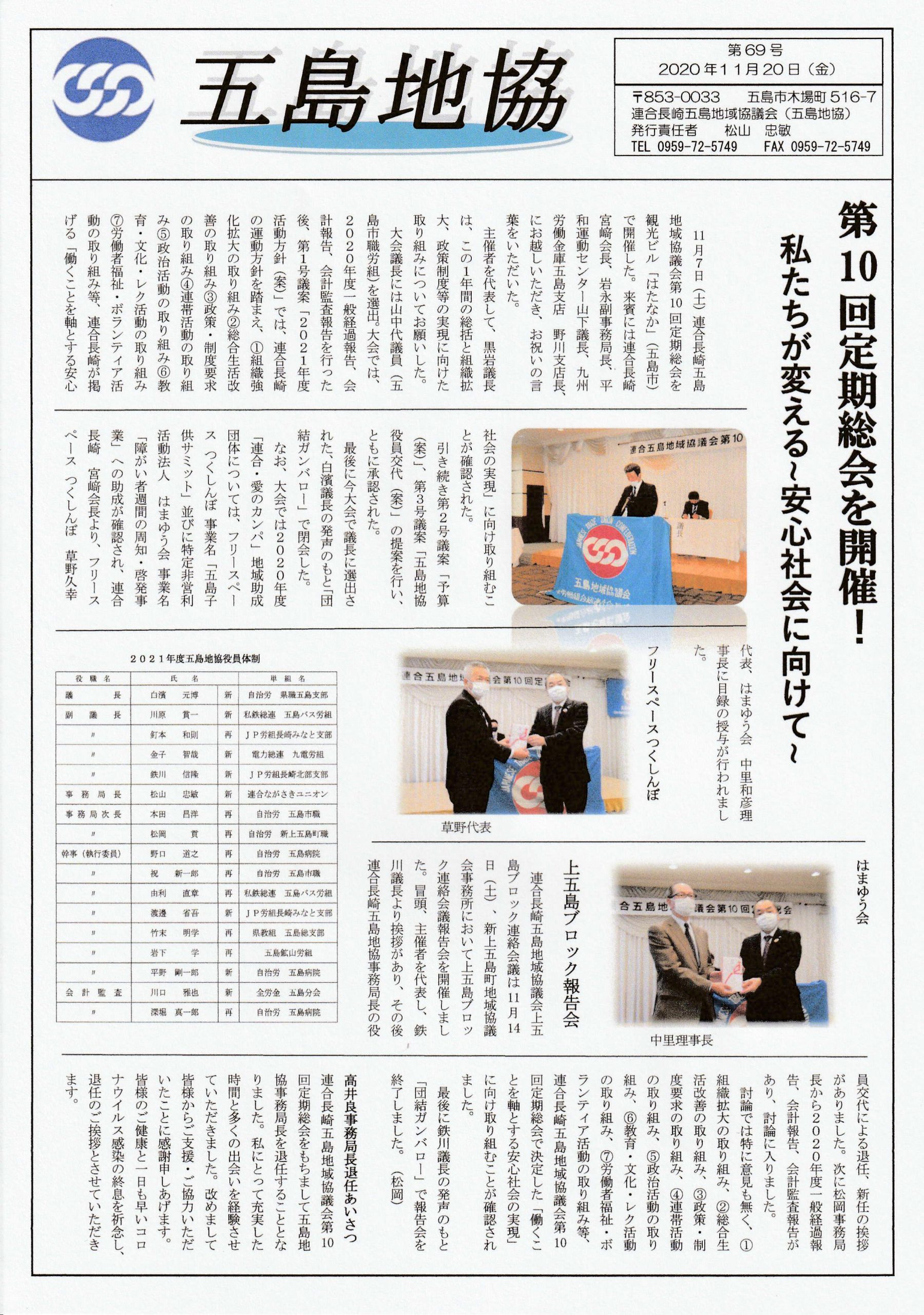 五島地協ニュースが発行されました。「五島地協定期総会」について掲載されています。